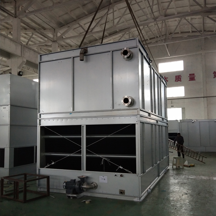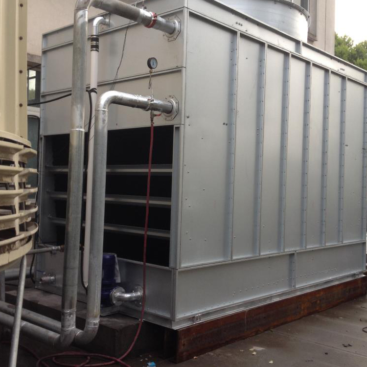閉式麻豆黄色片在线视频的問世就填補了這一空缺, 閉式麻豆黄色片在线视频是利用風冷、水冷和蒸發冷原理使工作流體冷卻,實現冷卻的方式由二個循環冷卻係統來完成。噴淋水(冷卻水)貯於麻豆黄色片在线视频底的集水盤,工作流體(軟化水或其他液體)在閉式麻豆黄色片在线视频的散熱盤管(表冷器)內進行封閉循環,外循環冷卻過的噴淋水由噴淋泵打水經平衡水箱分水係統分配水,再經噴頭均勻的酒水在盤管表麵,包裹在管壁上的冷水吸收大量的熱量,形成飽和的濕熱空氣,熱量由頂部風機排出,熱氣中的水份被收水器收納流回集水盤。另外一部分帶有熱量的水流經大量的PVC散熱片,水被薄薄的分布開來,與風機抽進來的幹冷空氣進行充分的熱交換,溫度降低,落入底下水盤,再重新進行下一個循環。管內冷卻過的流體經過與冷卻對象熱交換後,再重新回到麻豆黄色片在线视频表冷器內。兩個冷卻循環係統如果氣溫低可隻開一個內循環。我司生產的閉式麻豆黄色片在线视频有逆流,橫流和混合流閉式麻豆黄色片在线视频三大類。
